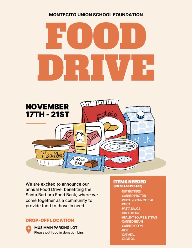 As we prepare for Thanksgiving, MUS is coming together to support families in need through our Annual Food Drive! From Monday, Nov 17 - Friday, Nov 21st, we’ll be collecting non-perishable food items to donate to our local food bank.